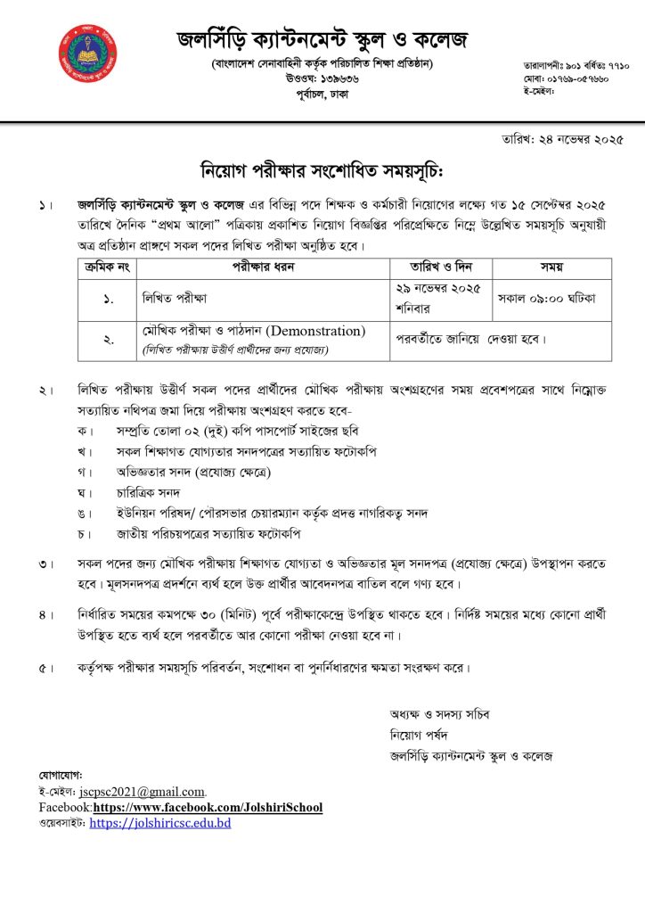 JOLSHIRI CANTONMENT SCHOOL AND COLLEGE